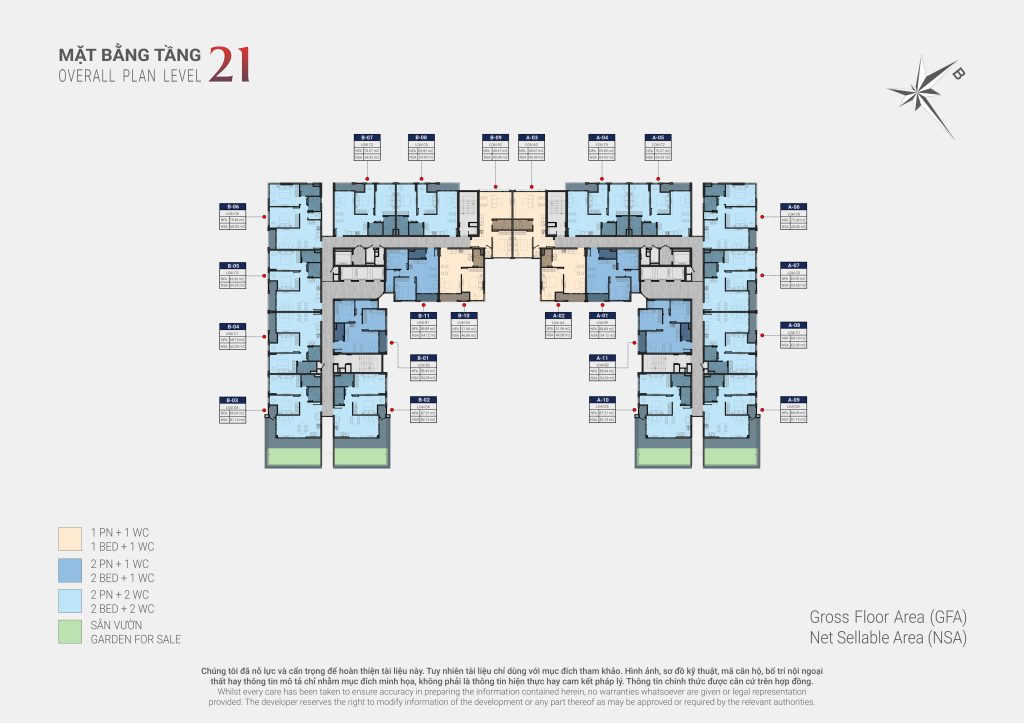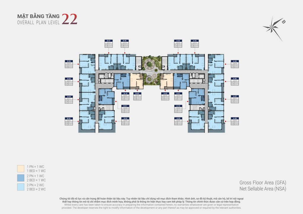 - Mật độ xây dựng: 34.7%, 25 tầng nổi & 1 tầng hầm, 1 tầng lửng